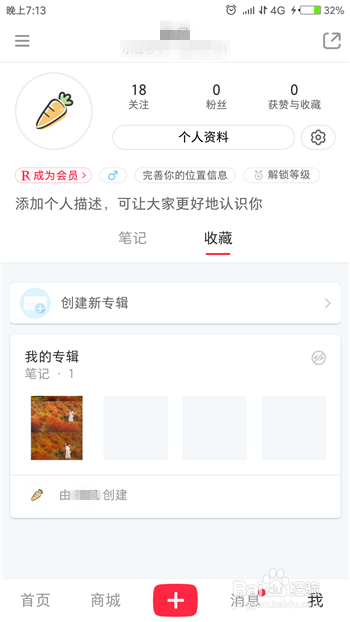 点击后会打开小红书的小我中间,在账号下方找到【保藏】选项并点击。