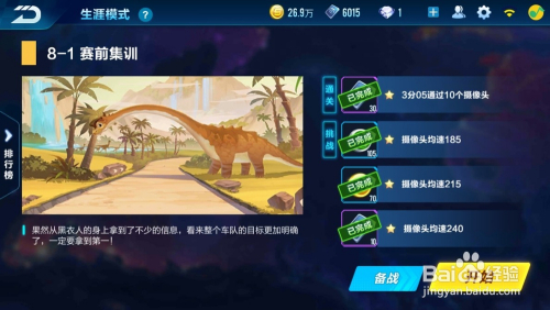 在地图侏罗纪公园,需要完当作“3分05经由过程10个摄像头/摄像头均速185/摄像头均速215/摄像头均速240”的使命,完当作后进入下一节