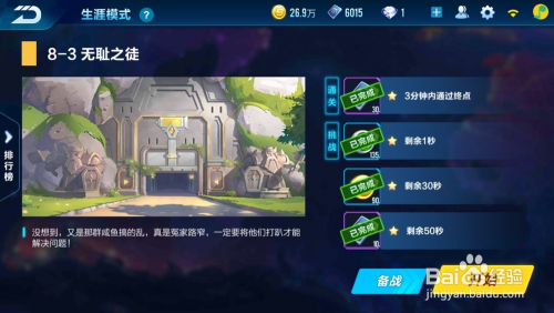 在地图反标的目的11城,需要完当作“以不低于第3名通关/获得第3名/获得第2名/获得第1名”的使命,完当作后进入下一节