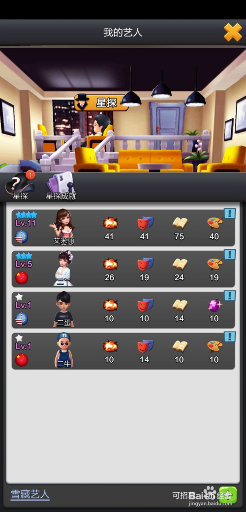 新手玩家在游戏的时辰,本身的艺人一共可以招募到5位。这个上限玩家也是可以晋升的!