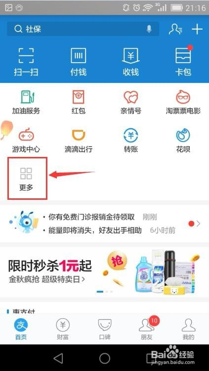 进入付出宝页面后点更多;