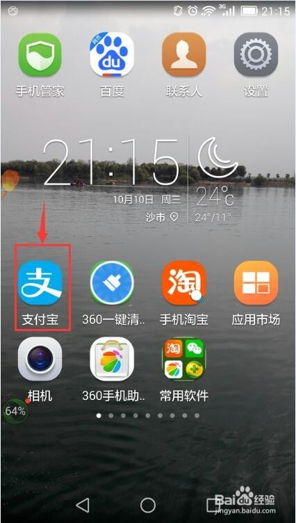 在手机上安装好付出宝,找到并打开它;