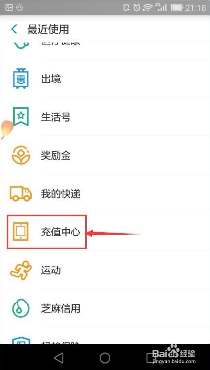 在呈现的选项中点充值中间;