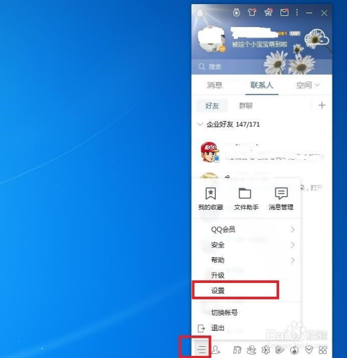 首先此刻电脑上登录 小我QQ账号,登岸后在QQ栏的右下方点击有三个 横杠的处所,在呈现的信息中选择点击“设置”。