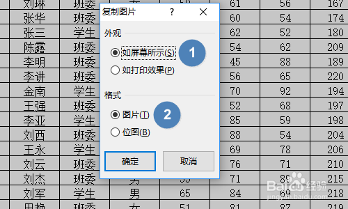 接着会弹出一个复制图片对话框,我们勾选此对话框中的外不雅为“如屏幕所示”,然后格局可所以图片也可所以位图;