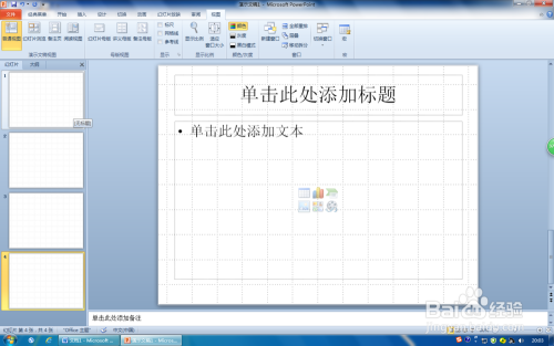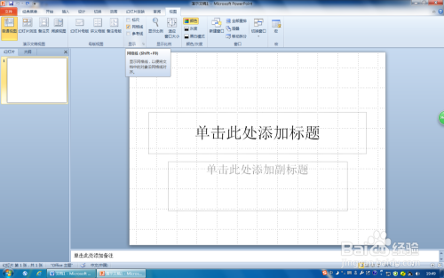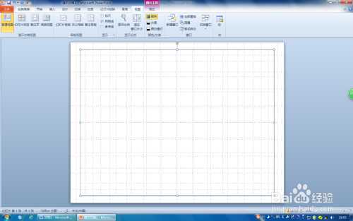 第一步:打开PPT2010,首先设置好幻灯片的显示比例。单击“视图”选项卡,在“显示”组选择“网格线”。