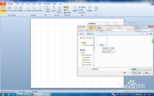 第六步:在弹出的“设置布景格局”对话框中选择“填充”、“图片或纹理填充”、“插入自:文件”,找到并选择保留的网格图片,单击“插入”,网格线就作为幻灯片布景插入到幻灯片窗格,然后单击“全数应用”即可。