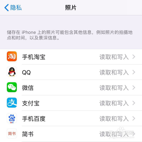 打开“照片”里面有你手机安装的应用,全数选择读取和写入即可