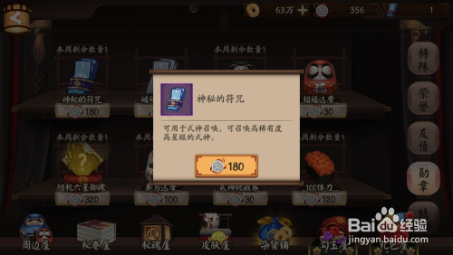 2、勋章兑换 在商铺中找到杂货铺,选择勋章,每周都可以用180勋章兑换一张蓝票,勋章获得路子比力多,做每日使命,逢魔之时、打结界等冲破均可获得。