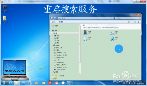 Windows 7 操作系统中的搜刮不是很给力,碰到如许的问题,不妨重启办事,也许会有改善。