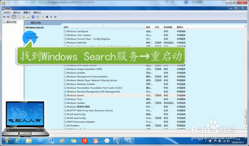 找到Windows Search→重启动此办事。