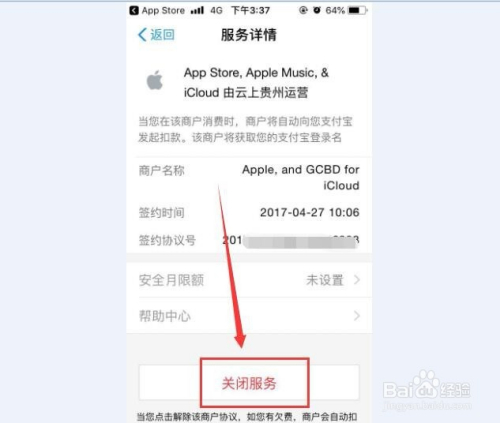 在付出宝免密付出页面我们就可以看到苹果手机的免密付出功能授权了,点击进入后选择封闭办事就可以了,如许苹果手机就打消免密付出功能了。