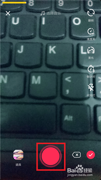 返回到拍摄界面后,点击底部的【拍摄】按钮可以继续拍摄,拍摄完当作后发布视频和正常是一样的,这里不外多介绍。