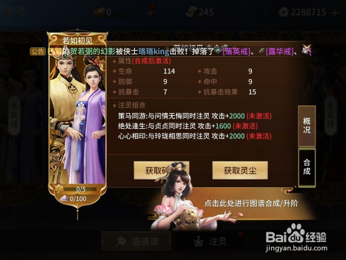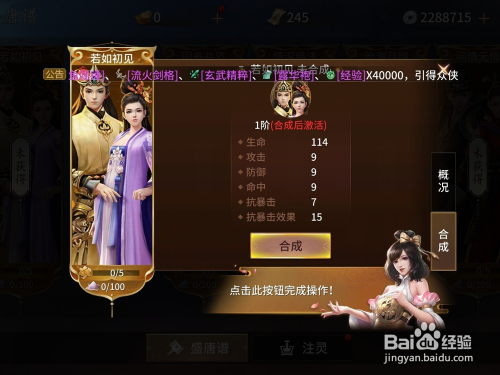 点击图谱页面右下角的合当作图标,接着选择合当作即可。注重每次合当作都需要碎片。