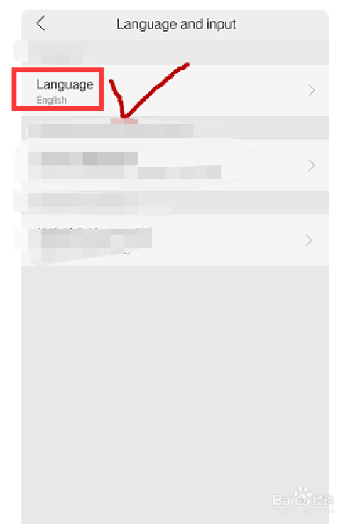 第四步就是进入【Language and input】的本家儿页面之后,找到【Language-English】这个按钮,并点击之,如下。