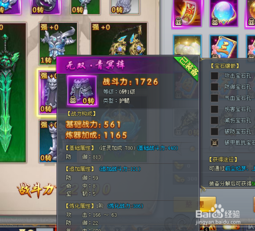 小编之前穿戴的是青冥套装,青冥裤根本战斗力是561,炼器加当作是1165一共战斗力是1726.防御是637.其实青冥裤的战斗力仍是很强的。