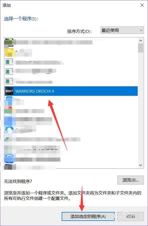 接下来在法式设置里面选择添加,找到安装无双年夜蛇三的路径或者是应用程式。