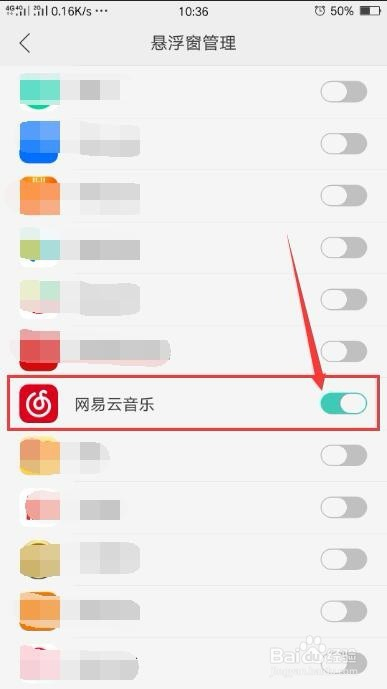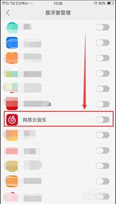 下拉浏览,找到需要开启悬浮窗的软件,这里以网易云音乐为例。