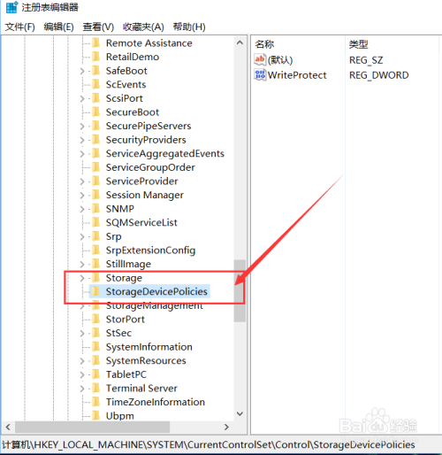 接下来,我们可以将新成立的子项从头定名,此处应该将其定名为:“StorageDevicePolicies”。