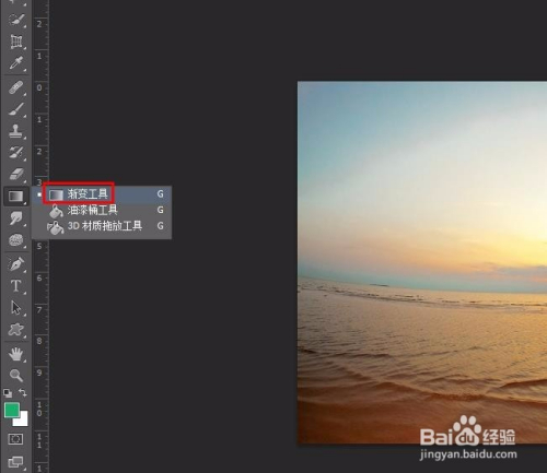 第四步:在左侧东西栏中选择“渐变东西”,按住鼠标左键在画布中拖动,填充颜色。