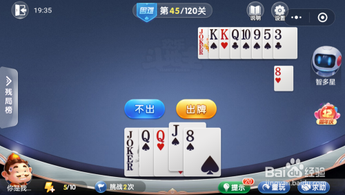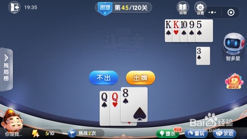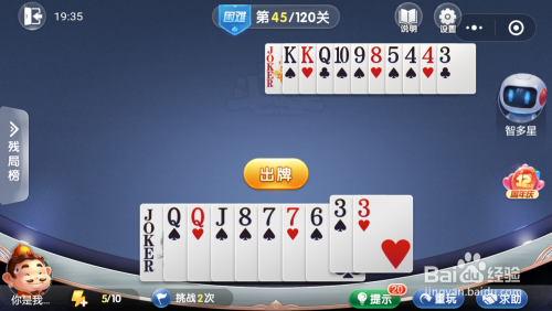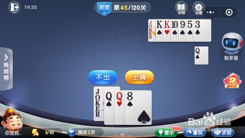 智多星打出一张K,接着打出一张5,然后我打出一张Q就过关了。