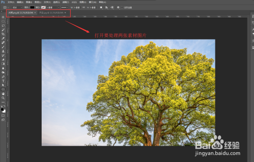 启动并打开PS软件,这里我利用的是PS CC 2018版本,建议利用高一点的版本,然后将我们筹办好的两个素材图片拖入到PS中打开。