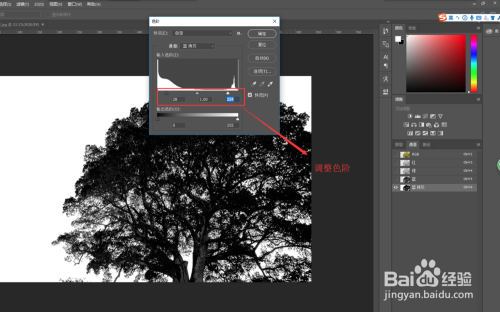 执行图形调整中的色阶号令,弹超卓阶调整窗口,在色阶调整窗口中,调整输入色阶的明暗两个部门,是的蓝色通道拷贝通道的黑色越黑,白色部门越白。