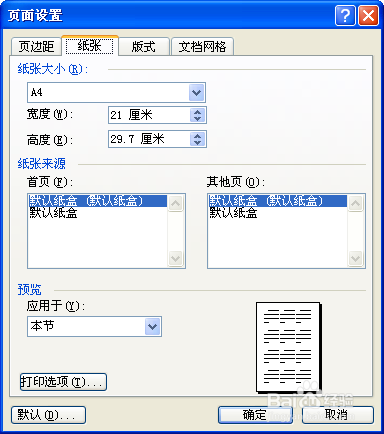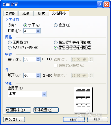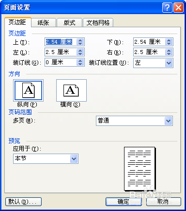 设置页边距:上、下、左、右;纸张大小:A4、A3、B5、自界说;文档网格:设置每页行数、设置每行字数。