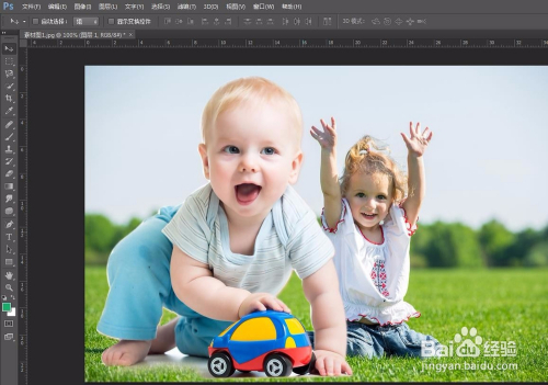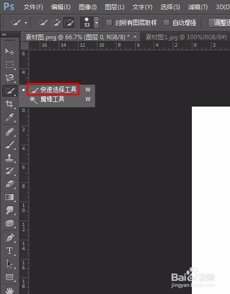 第二步:在左侧东西栏中选择“快速拔取东西”,选中人物区域进行抠图。