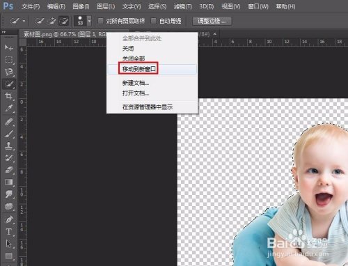 第三步:选中人物图片题目栏,单击鼠标右键选择“移动到新窗口”选项。