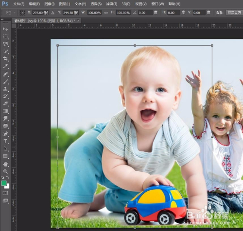 第五步:按Ctrl+T键,图层呈可调节状况。