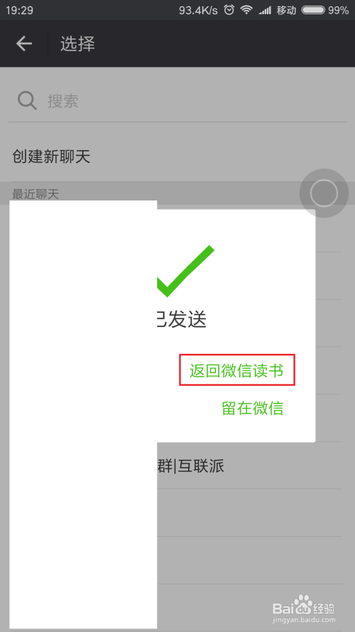 接下来,会主动挪用微信老友列表页面,我们点击“建立新聊天”菜单,然后打开微信老友菜单页面,选择此中的一个微信老友发送即可。