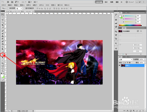 打开Photoshop(CS5)软件,打开一张我们找好的“钢炼”布景图片;