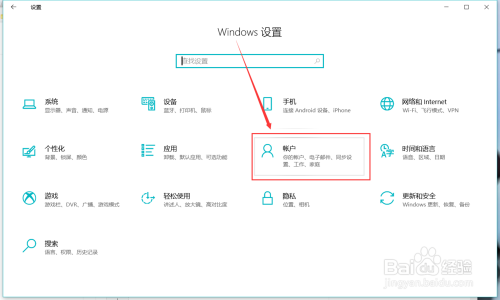 进入“Windows设置”,点击“账户”。