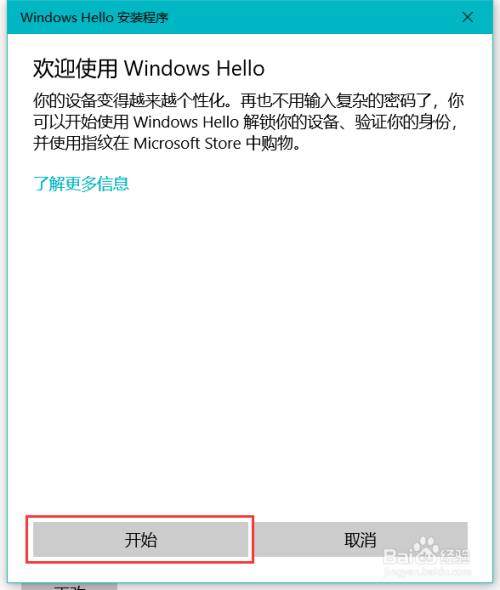 在弹出的“Windows Hello安装法式”对话框中点击“起头”按钮,起头把指纹录制到电脑中。