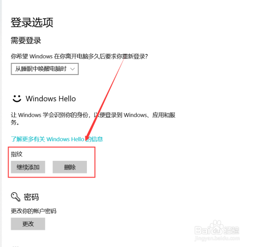 在登录选项下面就能对添加的指纹进行办理了。