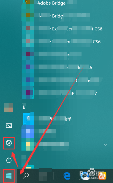 点按电脑桌面上的Win键,在“起头”菜单中点击如图位置的齿轮按钮。