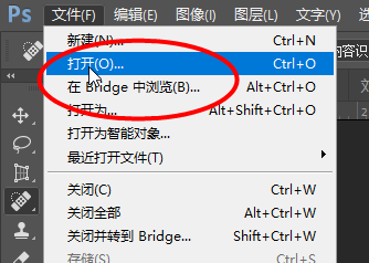 打开Photoshop软件,然后点击菜单栏中的文件-打开