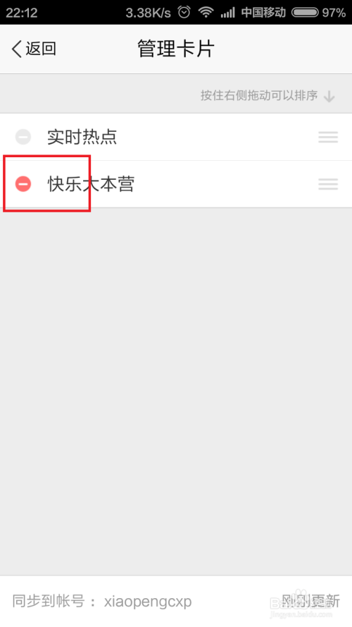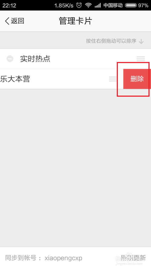 接下来,我给大师讲述另一种方式,那就是滑动卡片删除法。在需要删除的卡片中按住该卡片,然后将该卡片标的目的左滑动。