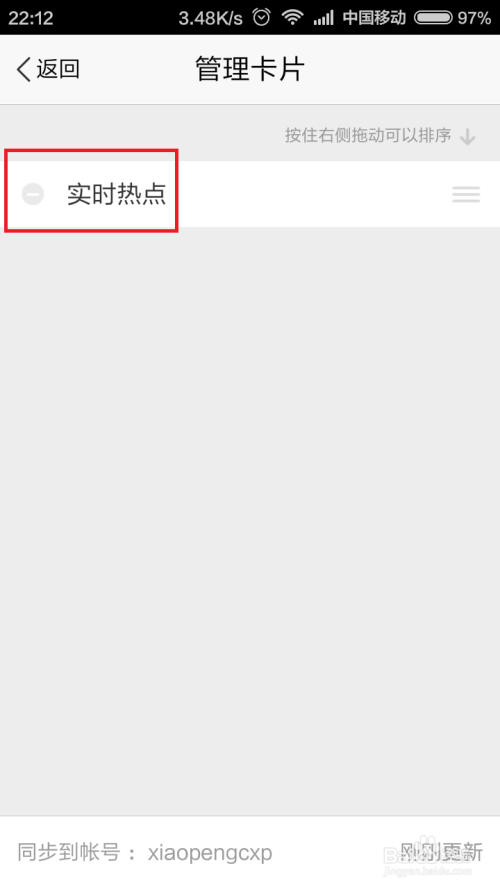 除了我们可以删除的卡片以外,在手机百度中还存在无法删除的卡片,那就是“及时热点”卡片。