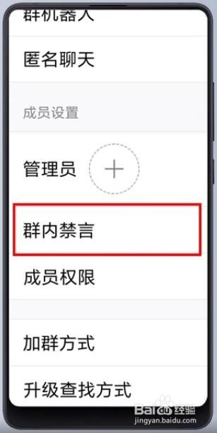 将“全员禁言”的灰色按钮,用手指画动后,调当作绿色即可。