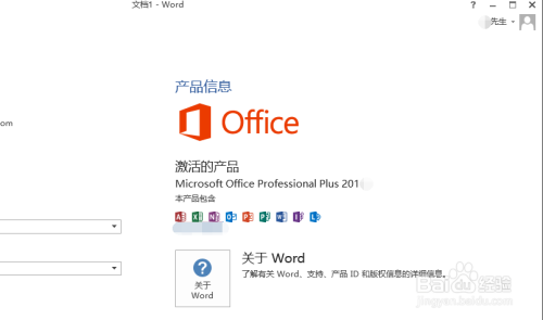 激活事后,可以肆意打开一个文档如word,然后点击左上角的文件 账户 ,可以查看是否激活。正常的激活是没有更改产物密钥的选项