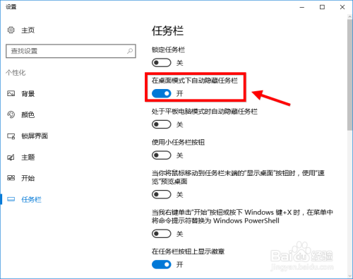 在桌面模式是否埋没使命栏这列打勾,然后点击右上角的x号,返回。