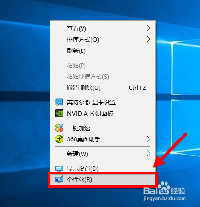 方式3:在win10桌面肆意位置右击,选择“个性化”。
