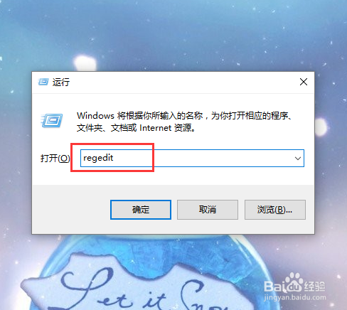 接下来,我们就可以按下Windows徽标键+R键,在弹出的运行窗口页面中,输入“regedit”选项,打开注册表编纂器页面。