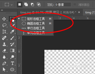 打开一张驼背的照片,点击矩形选框东西,然后将驼背的人像圈画出来