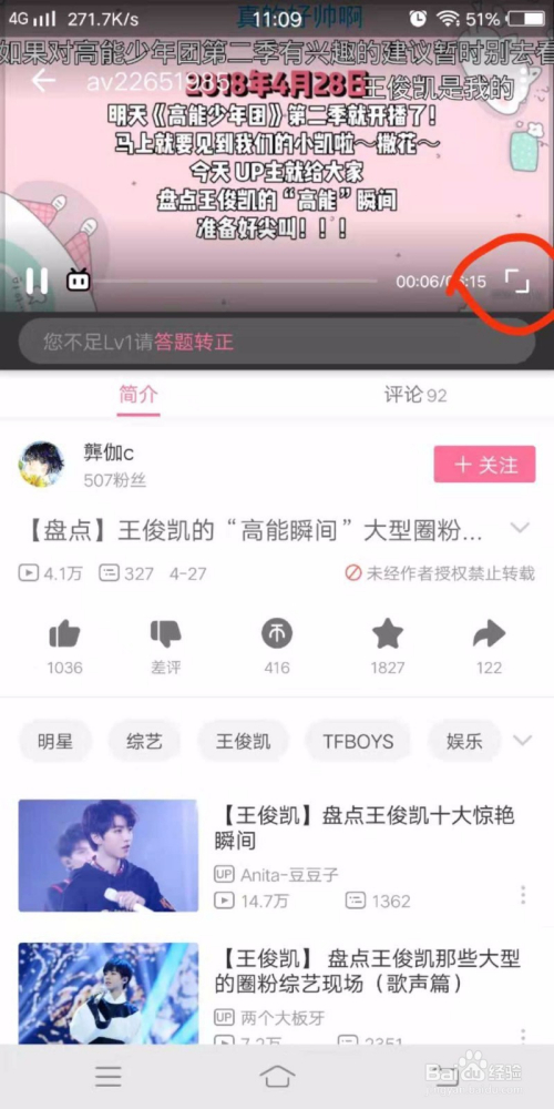 随便打开一个王俊凯啦啦啦啦,点全屏