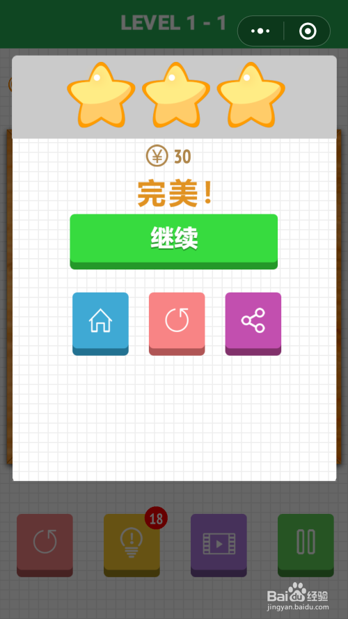 当滑块将线路接通后,便是完美过关,同时可获得奖励30分的好成就,此时可以点“继续”玩游戏。