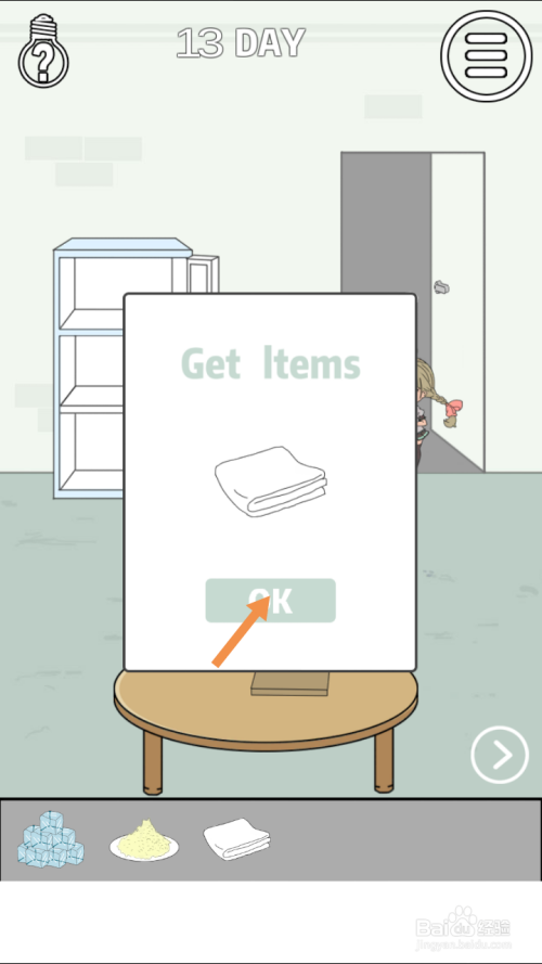 获得一盘年夜蒜后,点击门。门打开后,点击毛巾,然后点击OK。