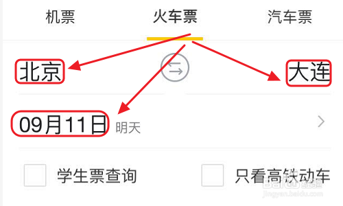 如上,在第三方办事窗口即可看到火车票订购选项了,接下来选择出发地和目标地,而且将出行日期选上;